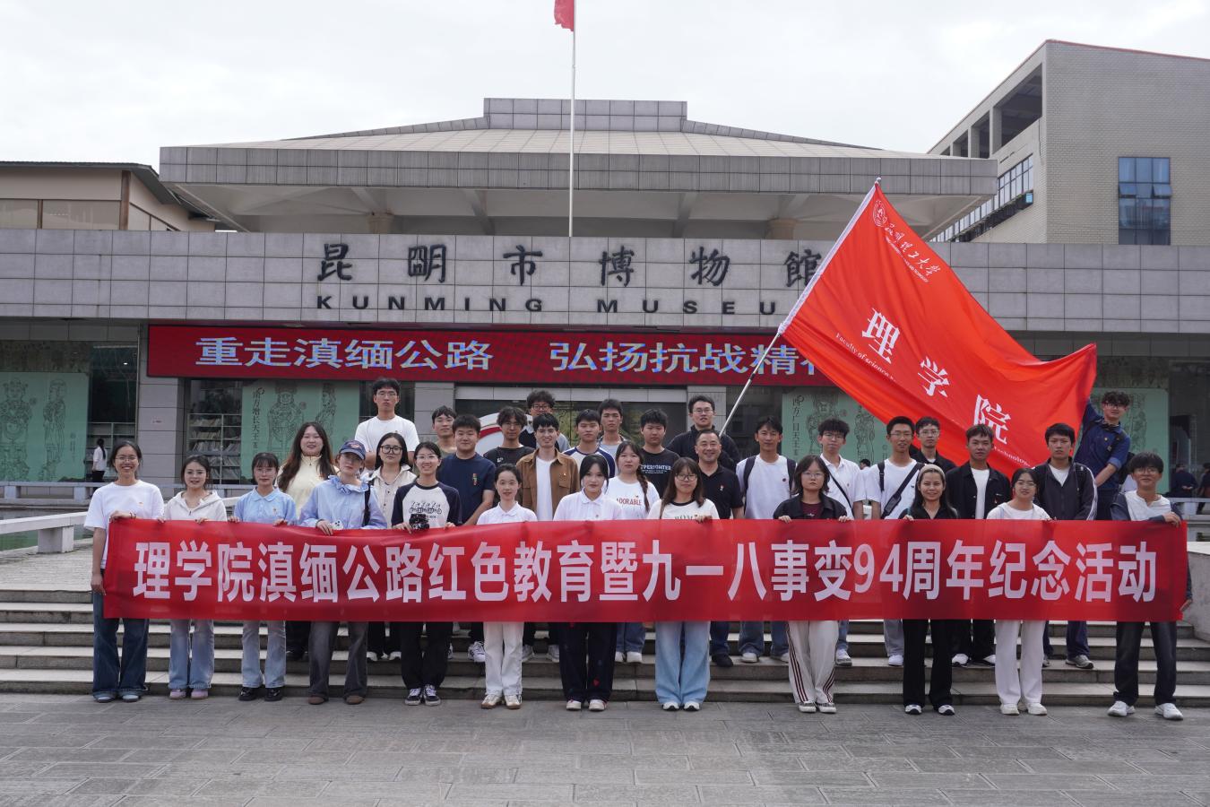 在九一八事变94周年纪念日之际,为铭记历史、缅怀先烈、弘扬爱国主义精神,理学院在昆明市博物馆开展了“血肉铸就抗战生命线——抗战时期滇缅公路档案文献图片展”暨九一八事变94周年纪念活动。理学院团委书记及党员代表、团学骨干、学工代表共43人参加。